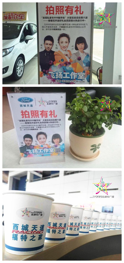 6月3日起至6月9日,凡999聽(tīng)眾至聯(lián)盟商家店內(nèi)拍下私家車廣播logo以及“飛揚(yáng)工作室”任一相關(guān)信息,并發(fā)送關(guān)鍵詞“發(fā)現(xiàn)999”至我們微信公眾平臺(tái),同時(shí)留下你的“姓名+電話”,前50位車友均可獲贈(zèng)2升機(jī)油!