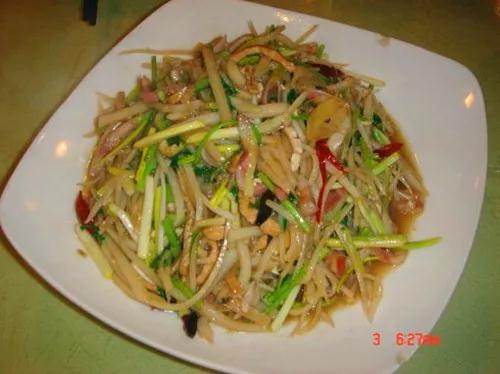 細香碟兒上灶,一道名字聽起來特別文藝的美食。王樹誠跟記者介紹說:“他是用那種香菜根,加上筍尖根、再加上蘆筍根,還有豬耳朵的耳根,總共是有5到6種跟炒在一塊,特別爽口,特別下酒。招待外來朋友的話,點上那個菜也是一個就是比較好的一種享受?!?/p>