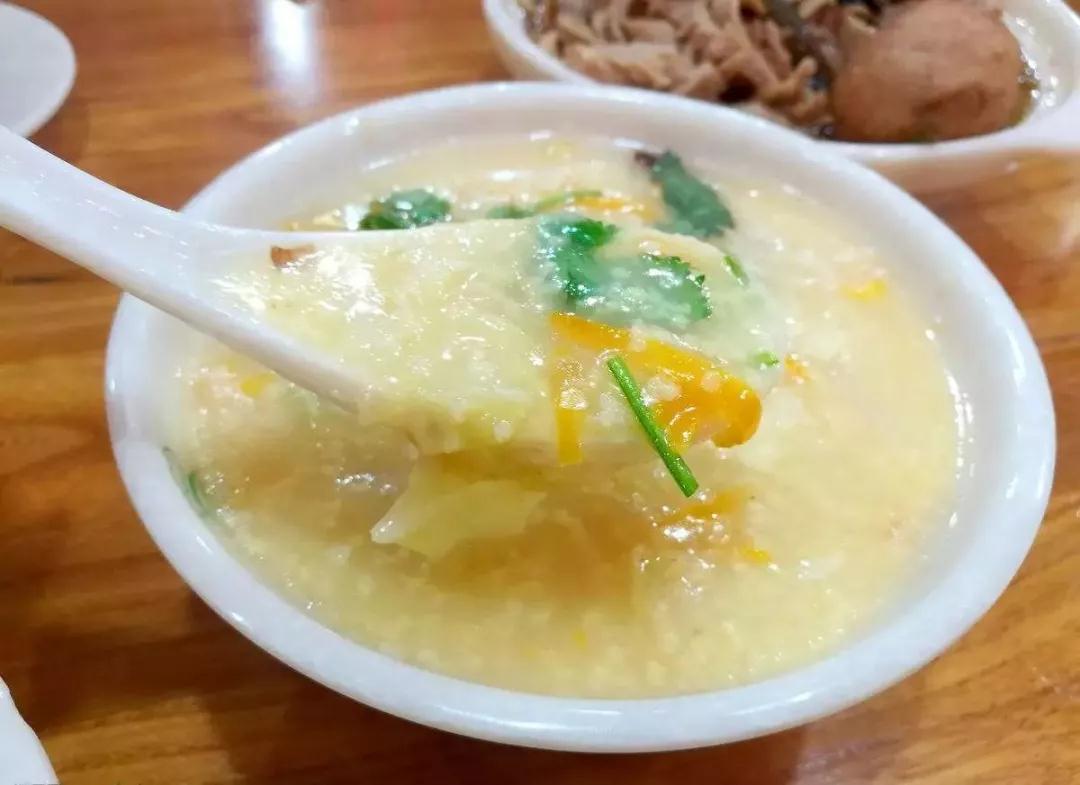 安陽殷墟管理處講解員羅斌:“這種粉漿飯,酸酸的像北京豆汁一樣發(fā)酵型的,然后方面里面會放上這種白菜,豆子呀之類的,特別呼呼呼呼的一鍋,然后吃到比較暖胃。就是綠豆釀的,所以他夏天吃比較好。 清熱解渴”