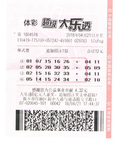 張先生這張中獎(jiǎng)的彩票上,共有四注,屬單式追加投注,票面金額12元。據(jù)張先生介紹,前兩注是他從體彩銷(xiāo)售網(wǎng)點(diǎn)推薦的號(hào)碼中選出的,后兩注是他長(zhǎng)期守號(hào)的號(hào)碼,這次是第二注讓他幸運(yùn)的斬獲大獎(jiǎng)!