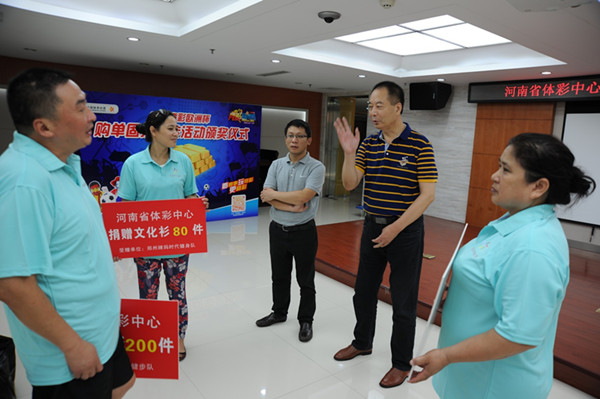 據(jù)河南省體彩中心主任孫和平介紹,中國體育彩票作為國家公益彩票,其發(fā)行宗旨是“來之于民 用之于民”,一直履行著支持全民健身這一光榮使命。去年是《意見》印發(fā)的第二年,河南體彩中心已開始落實(shí)該文件精神,向社會(huì)健身團(tuán)體捐贈(zèng)了3000件健身服裝,受到健身群體的歡迎和高度贊揚(yáng),取得了良好的社會(huì)效益。今年的捐贈(zèng)是河南體彩中心支持我省全民健身這一公益活動(dòng)的延續(xù),今后我們將嘗試擴(kuò)大捐贈(zèng)范圍,讓更多的健身群體在強(qiáng)身健體、重視體育、支持體育、參與體育的過程中,感受到中國體育彩票的關(guān)注和支持,讓更多的群眾在健身中受益。孫主任表示:河南體彩中心也希望通過持續(xù)和擴(kuò)大類似的公益活動(dòng),為我省的父老鄉(xiāng)親在強(qiáng)身健體、健康生活的道路上,做出河南體彩人積極的貢獻(xiàn)。今年我省的“全民健身日”主題活動(dòng)將在焦作舉行,各地市也會(huì)開展大規(guī)模的全民健身主題活動(dòng),預(yù)祝我省的全民健身主題活動(dòng)圓滿成功。