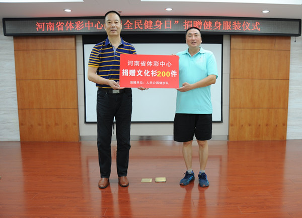 今年的8月8日將迎來我國第8個(gè)“全民健身日”,為了有力支持我省的全民健身工作,滿足廣大人民群眾日益增長的健身需求,河南省體育彩票管理中心于7月29日上午向社會(huì)團(tuán)體和今年我省“全民健身日”主題活動(dòng)舉辦地捐贈(zèng)了3000件體恤衫,并在河南體彩中心會(huì)議室舉行了簡短的捐贈(zèng)儀式。