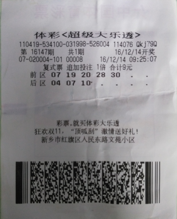 據(jù)尚先生介紹,他每次購買彩票都是自己根據(jù)走勢圖和感覺進行選號,復(fù)式投注是他的最愛。近期“大樂透”一等獎頻出,而復(fù)式投注命中一等獎的幾率更是非常高。尚先生說:“我每次購買‘大樂透’都不會忘記追加,追加投注帶來的獎金對于復(fù)式票是非常可觀的?!鄙邢壬ㄟ^復(fù)式追加票共獲得本期中獎獎金也達到了5萬多元。