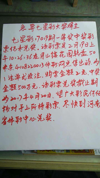 河南體彩多方尋人 500萬獎金仍憾成棄獎