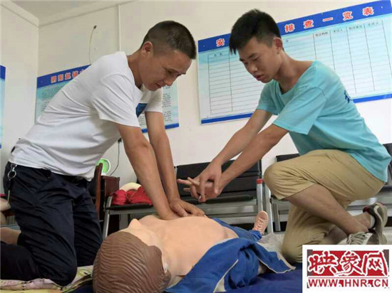 與此同時,地上擺放的人體模型引起了村民的極大興趣,他們在模型周圍坐成一圈,一邊觀察志愿者的演示一邊提問。部分村民還走上前來,在志愿者的指導(dǎo)下練習(xí)剛剛學(xué)到的心肺復(fù)蘇術(shù)。
