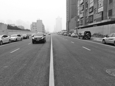 昨日上午11點30分,記者驅(qū)車從東明路緯四路口右轉(zhuǎn)向東進入緯四路(東明路未來路段)(如右圖),只見嶄新的瀝青路面已完全鋪好,道路為雙向四車道,東西方向已經(jīng)有很多機動車開始從這里“嘗鮮”。