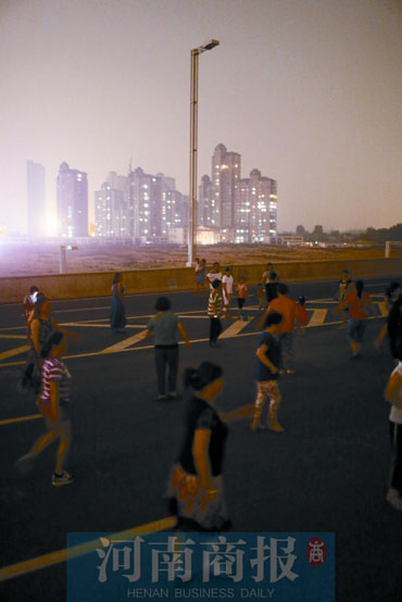 前天晚上7時(shí)30分,鄭州市南三環(huán)與京廣路交叉口向南500米路西,幾名市民沿著高架橋匝道向二層走去。高架橋二層橋面西側(cè),人們?nèi)宄扇海笕藗冞呑哌吜奶?,小孩兒則在車(chē)道上嬉笑玩耍。東側(cè),一名女士大步快速地向北走,“不刮風(fēng)不下雨,沒(méi)事兒就來(lái)這鍛煉。”此外,還有30多名市民正在跳廣場(chǎng)舞。