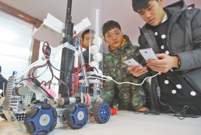 咱鄭州的學(xué)生“玩”機(jī)器人很有一手!11月23日~24日,2015世界青少年機(jī)器人邀請(qǐng)賽在北京舉行,鄭州二中8名高中生組成的隊(duì)伍“殺入”四強(qiáng),國(guó)內(nèi)排名第二,并榮獲最佳設(shè)計(jì)獎(jiǎng)。昨日,記者見到了剛剛比賽歸來的學(xué)生們和他們?cè)O(shè)計(jì)的機(jī)器人。