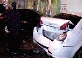 撞擊還使得停在路邊的黑色現(xiàn)代轎車車尾受損,另一輛白色別克轎車車頭被撞進臨街商鋪,車尾保險杠被撞扁,后備廂也被撞開。