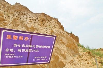 為保護鳥兒安全度過繁育期,河南省森林公安局、河南省野生鳥類觀察學(xué)會在土堆前立了一塊警示牌,上書“鳥類棲息地,禁止靠近”,呼吁社會善待候鳥。而新鄭市林業(yè)局林政科有關(guān)人員在接受記者采訪時亦稱:“我們只要一接到群眾舉報,立即會同公安機關(guān),盡快把這些燕子集中育雛地保護起來,除告知施工單位停工外,還在一定區(qū)域內(nèi)拉起警戒線,禁止無關(guān)人員驚擾燕子孵卵育雛,今年新鄭市總共有三處燕子育雛地被集中保護,新鄭市保護崖沙燕的善舉曾得到過中央級媒體的表揚,接下來我們會再接再厲,爭取做得更好。”