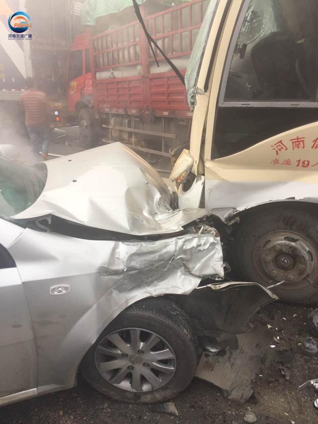 今天(11月14日)連霍高速西向東方向,距開封下站口3.5公里左右,發(fā)生多車連環(huán)追尾事故,車損很嚴重,有人員受傷。
