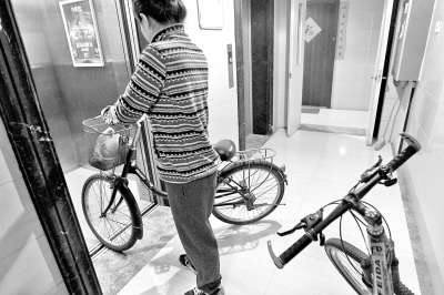 把自行車(電動(dòng)車)推到家里或家所在的樓層走廊里,是很多居民的選擇。