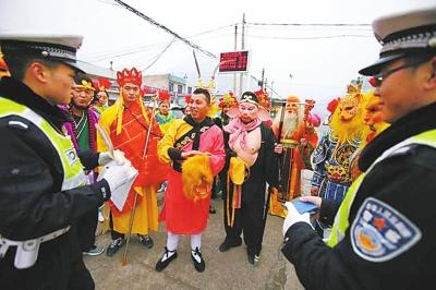 河南交警查車時發(fā)現(xiàn)一輛車由“孫悟空”駕駛,車上乘客則是《西游記》中的一群“神仙妖怪”,這則消息昨天成為網(wǎng)絡(luò)熱點。事情真相如何?昨天大河報記者聯(lián)系到河南省公安廳交警總隊相關(guān)人士進行核實。