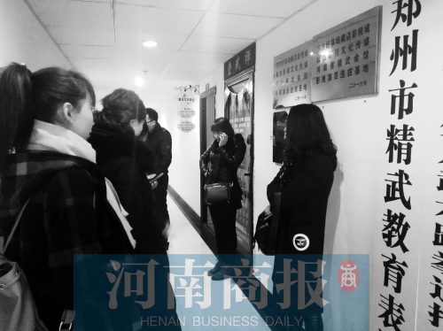 學(xué)生家長們在培訓(xùn)班門前,商量怎么找到負責(zé)人
