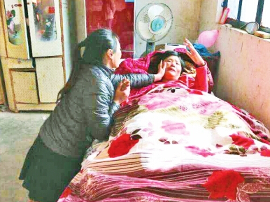 姐姐在照顧受傷的母親