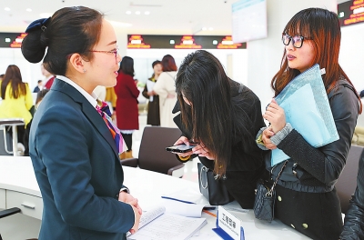 4月1日,中國(河南)自由貿(mào)易試驗區(qū)鄭州片區(qū)綜合服務(wù)中心內(nèi),工商預(yù)審柜臺正在接受客戶咨詢。⑨7本報記者聶冬晗攝