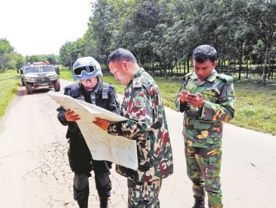 在2016年9月5日,巴波盧遠(yuǎn)程巡邏勤務(wù)中,他和戰(zhàn)友像往常一樣前往星基地與軍事觀察員匯合開展聯(lián)合巡邏勤務(wù)。由于那次屬于跨州遠(yuǎn)程巡邏,路途較遠(yuǎn),在現(xiàn)場聽取軍事觀察員情況通報時,細(xì)心的他了解到軍事觀察員通報的巡邏路線與他們接到的指令并不一致,不僅路程更遠(yuǎn),而且要繞道沿途情況不明的小路。在向上級報告后,他主動向軍事觀察員解釋,可軍事觀察員態(tài)度強硬,聲稱巡邏路線應(yīng)由他們確定。面對這些,他據(jù)理力爭,并對兩種巡邏路線進行比對,分析利弊,辯駁得軍事觀察員啞口無言。最終,軍事觀察員同意按照前期指令的巡邏路線行動。不僅如此,軍事觀察員還豎起大拇指稱贊“You areprofessional!(你是專業(yè)的)”。而他則將手放在胸前的五星紅旗上,微笑著答道“Thanks!(謝謝)”。