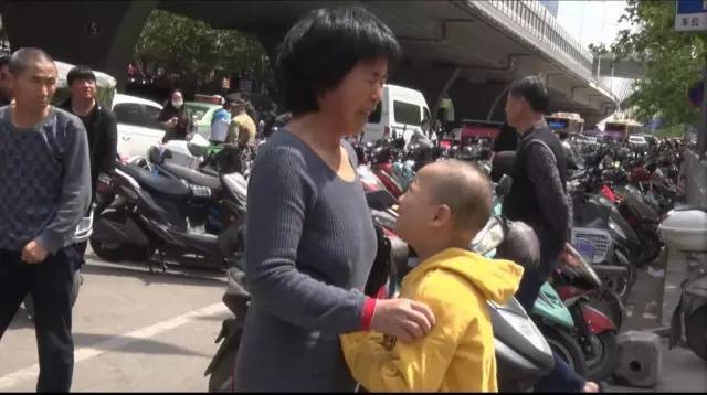 4月23日,河南鄭州,一名患白血病的7歲男孩與奶奶當(dāng)街抱頭痛哭。他急需做骨髓移植手術(shù),但血型和父親不一致,離家3年杳無音訊的母親成最后希望。