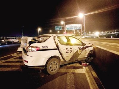 處理事故時,執(zhí)行任務(wù)的警車遭到撞擊