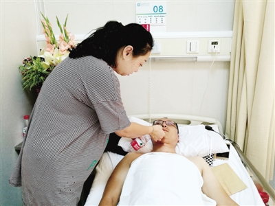 馬衛(wèi)東躺在病床上,妻子蘇娟陪護(hù)一旁,安慰老公不要擔(dān)心家里的事情,讓他安心靜養(yǎng)。