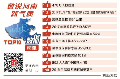 120多萬(wàn)張選票,110多萬(wàn)人次閱讀量!經(jīng)過(guò)網(wǎng)絡(luò)票選和專家評(píng)審,9月18日,河南日?qǐng)?bào)喜迎十九大特別策劃——“砥礪奮進(jìn)的五年·數(shù)說(shuō)河南新氣質(zhì)”TOP10數(shù)據(jù)正式出爐。這是一份飽含著自豪感的榜單。這組數(shù)據(jù)不僅濃縮了河南五年的成就,也凝聚著無(wú)數(shù)人對(duì)家鄉(xiāng)的熱愛(ài)和驕傲。