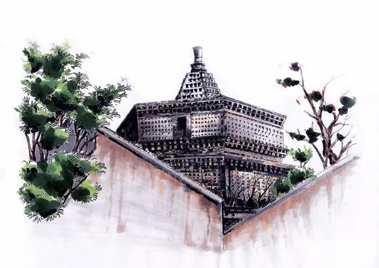 之后,他嘗試把手繪圖片發(fā)到網(wǎng)上,沒想到,畫稿頗受校友們的喜歡。從2015年到2017年,邢年轉(zhuǎn)創(chuàng)作了70余幅河南大學(xué)及開封古建筑手繪作品,其作品作為河大畢業(yè)生和新生紀(jì)念品,累計(jì)銷售超8000套。