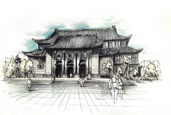 簡單勾勒,沒有濃墨重彩,一如大禮堂古樸典雅的模樣。大禮堂前人來人往,四季更替,她靜穆佇立,深情地望著每一位腳步匆匆的學(xué)子。