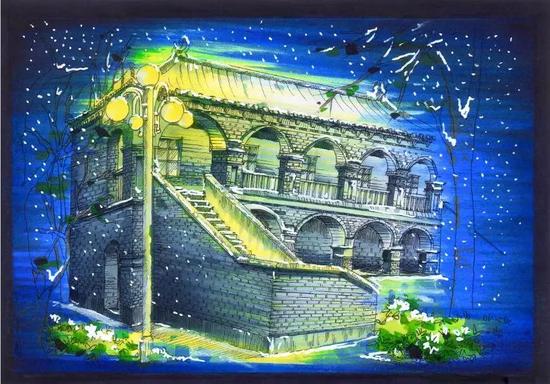 有彩色的付出就有金色的回報(bào)。手繪畫作如此受歡迎,邢年轉(zhuǎn)很受激勵(lì),也由此發(fā)現(xiàn)了潛在商機(jī)。2017年,邢年轉(zhuǎn)和幾個(gè)同學(xué)創(chuàng)辦了公司,邢年轉(zhuǎn)作為美術(shù)總監(jiān),負(fù)責(zé)創(chuàng)作,試推廣的手繪開封的作品也有兩百套。今年,他又參加了尉氏縣規(guī)劃館的籌備,手繪尉氏縣興國寺塔、劉青霞故居紀(jì)念館、老城門和阮籍嘯臺的復(fù)原圖。