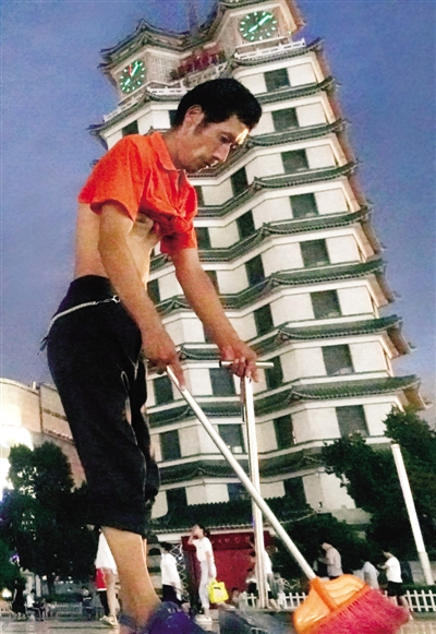 昨晚,二七廣場(chǎng)上一環(huán)衛(wèi)工在掃地