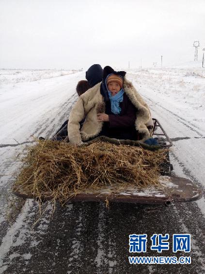 由于降雪導(dǎo)致牧區(qū)交通不暢,給牧民的生產(chǎn)生活帶來(lái)很大的困難。采訪沿途,記者見(jiàn)到了一輛毛驢車(chē)上從遠(yuǎn)處駛來(lái),車(chē)上坐著兩位老人。73歲的正藍(lán)旗烏蘭二隊(duì)的農(nóng)民張藍(lán)花說(shuō),雪太大班車(chē)也不通,老伴犯了腎病,他們只好在家門(mén)口鏟出小道,趕著毛驢車(chē)走到了公路上,準(zhǔn)備到鎮(zhèn)醫(yī)院看病。