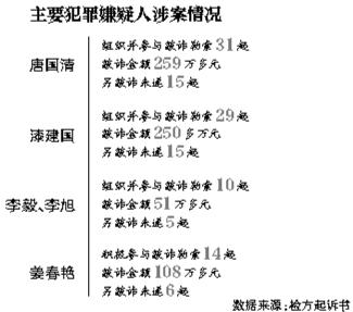 起訴書(shū)中,唐國(guó)清、漆建國(guó)、李毅被認(rèn)為是組織領(lǐng)導(dǎo)者;姜春艷積極參與并協(xié)助唐國(guó)清等人管理其他人。上述4人被認(rèn)為是主犯。