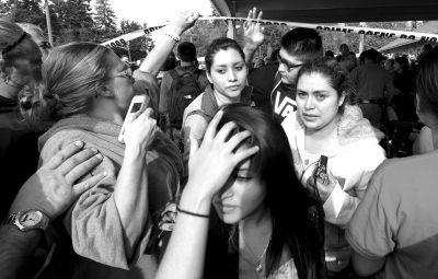 10月24日,在美國華盛頓州西雅圖市,學生和家長在槍擊案發(fā)生后團聚。新華社發(fā)