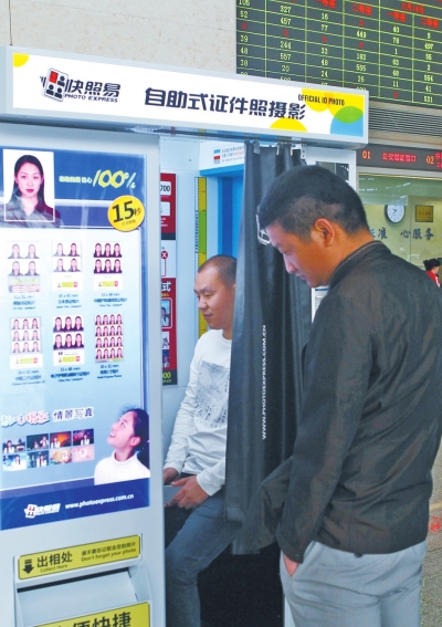 辦證窗口旁邊一臺(tái)自拍機(jī)專(zhuān)為沒(méi)照片者拍照