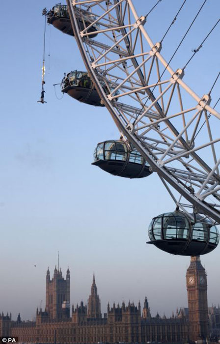 喜愛魔術(shù)的人一定不會對逃生術(shù)感到陌生。然而,在幾十米的高空表演玩命逃生術(shù)的恐怕并不多見。據(jù)英國《每日郵報》3月5日報道,“倫敦眼”摩天輪上5日就上演了一幕玩命逃生術(shù):表演者將自己倒掛在摩天輪上,僅用了幾分鐘就擺脫了燃燒的繩子成功逃生。