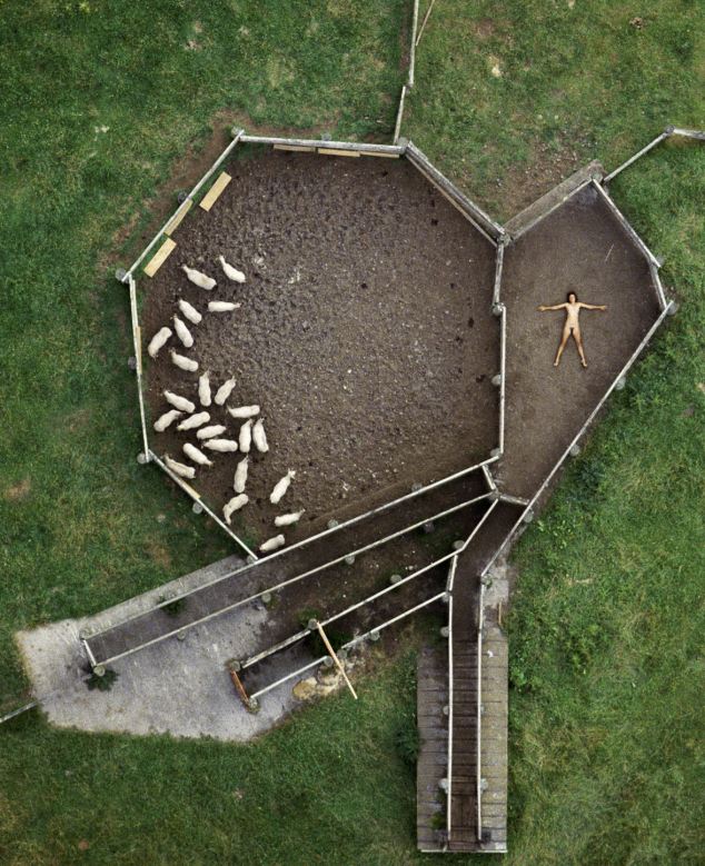 據(jù)悉,1984-1987年間,約翰利用直升機(jī)航拍了一組妻子的裸體照片。妻子在農(nóng)田、養(yǎng)豬場(chǎng)、機(jī)場(chǎng)跑道、海邊、鐵軌及移動(dòng)的汽車上一絲不掛,舒展著四肢。他說(shuō):“在那些地點(diǎn)拍攝裸體照片,可以反襯出人類在大千世界的渺小和微不足道。”