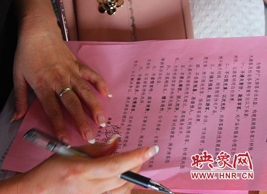 宣誓完后,參加宣誓的各鄉(xiāng)鎮(zhèn)、各有關(guān)委局、旅游景區(qū)、星級(jí)酒店、景區(qū)商戶、旅行社以及農(nóng)家賓館業(yè)主紛紛簽訂了《欒川旅游服務(wù)“八不”承諾書(shū)》。承諾內(nèi)容包括:不漫天要價(jià),欺客宰客;不以假充真,以次充好;不強(qiáng)買(mǎi)強(qiáng)賣(mài),欺壓游客;不態(tài)度粗暴,惡語(yǔ)傷人;不厚此薄彼,因人而異;不見(jiàn)利忘義,擅自違約;不虛假宣傳,誤導(dǎo)消費(fèi);不推諉扯皮,怠慢游客。