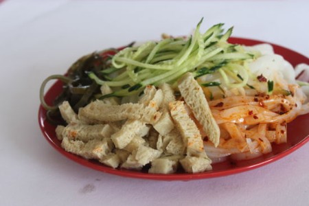 水席的得名其實(shí)也好理解,就是“湯湯水水”,每道菜肴多多少少都有些湯水,即便是模樣類似梅菜扣肉的腐乳肉,肉片下面也潤著些紅腐乳湯的水水潤潤。原以為水席不過是招攬外地過客的美食窗口,卻不想洛陽老城西大街附近的水席一家挨一家,一時(shí)間“水漫金山”。一些水席老店在洛陽有著好口碑,于是堂而皇之找去,卻不想11點(diǎn)出頭的光景早已客滿,老板娘的話客氣中帶著自信,“您明天早點(diǎn)來?!?/p>