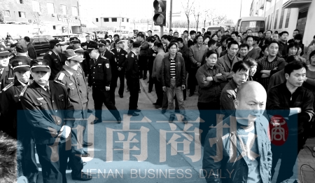 4月5日下午3時20分許,鄭州市長江路與工人路交叉口東、西、北三個方向的路口處,站著近百人,將此處堵得嚴(yán)嚴(yán)實(shí)實(shí),過往車輛只能繞行。