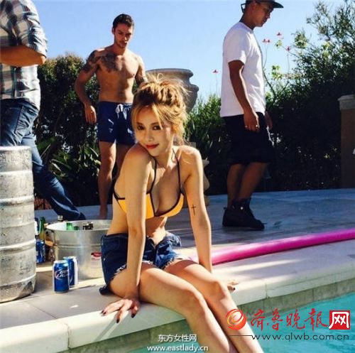 泫雅7日在自己的Instagram上更新了多張泳池邊的照片,雖然大部分都是遠(yuǎn)景照,只隱約看得出來(lái)一群人似乎是在泳池邊開派對(duì),不過(guò)其中一張泫雅狀似魅惑地看著鏡頭的照片,終于發(fā)現(xiàn)原來(lái)化上鮮艷紅脣的泫雅,穿著清涼的鮮黃色比基尼,并大秀圓潤(rùn)C(jī)奶和超深事業(yè)線,加上身穿牛仔短褲露出修長(zhǎng)美腿,上面的釦子還直接大方解開,簡(jiǎn)直令人血脈噴張