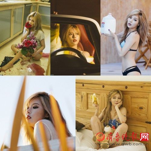 泫雅在這一系列照片中,毫不吝嗇地與大家分享自己的好身材和修長(zhǎng)美腿。