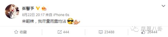 前天晚上,張馨予在微博對粉絲大發(fā)福利,說要雨露均沾地“翻牌”,回答粉絲們的問題。