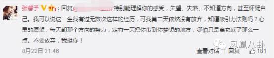 比如有網(wǎng)友正處于藝考的迷茫期,求問怎么辦。張馨予以自身經(jīng)歷開導(dǎo)她:“我一生中有無數(shù)這樣的經(jīng)歷,可是我第二天依然沒有放棄?!辈⒛贸鑫Ψ▌t告訴粉絲,“每天朝那個方向努力,定有一天把你帶到你夢想的地方。”