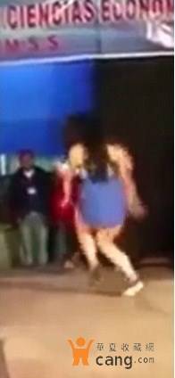 視頻中,一名拉丁裔美女身著藍(lán)色緊身迷你裙和黑色恨天高站在舞臺上,周圍滿是熱情的觀眾。在一陣歡呼聲后,她踩著貓步,扭動著腰肢向舞臺中央走去??删驮谀菚r,尷尬的一幕發(fā)生了:她突然失去了平衡,身子向后仰,眼看著就要一屁股坐到地上。好在她及時伸出手撐住了身體,才“幸免于難”。