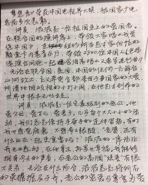 在信中,胡潔先是贊美周立波是真正的藝術(shù)家,不僅拒絕了“幫助韓國文化侵略”還致力于公益節(jié)目。她還強(qiáng)調(diào)周立波很愛國,曾帶領(lǐng)2800位中國人在紐約卡內(nèi)基音樂廳含淚唱義勇軍進(jìn)行曲。接著她還以妻子的身份大贊周立波是個“完美級別的老公”。