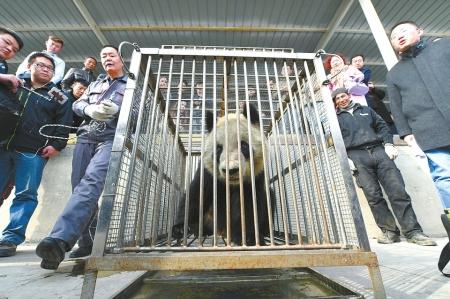上午9時(shí)許,飼養(yǎng)員趁著“蜀蘭”早膳的時(shí)間對她進(jìn)行出行前的身體檢查。體重95.6公斤,體溫36.2度,血壓正常。