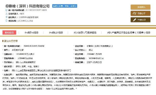 2016年9月,一家深圳公司注冊(cè)成功,名為“深圳市賺他一個(gè)億電子實(shí)業(yè)有限公司”,這家注冊(cè)資本100萬(wàn)元。
