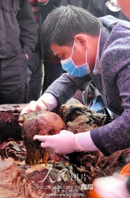 7月28日,在上饒市弋陽縣新看守所建筑工地,挖出一個(gè)古墓,現(xiàn)場(chǎng)掘出一口棺材,并發(fā)現(xiàn)一具保存尚為完好、身著疑似名門貴族服飾的女干尸。弋陽縣文物部門人員初步判斷,此是明代中期左右古墓。