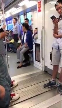 南京地鐵1號線上為了一座位,這位大媽非要認(rèn)為是老人才可以座,年輕人要讓座,結(jié)果一屁股坐在小伙的腿上。小伙子也不動,畫面就僵住了……
