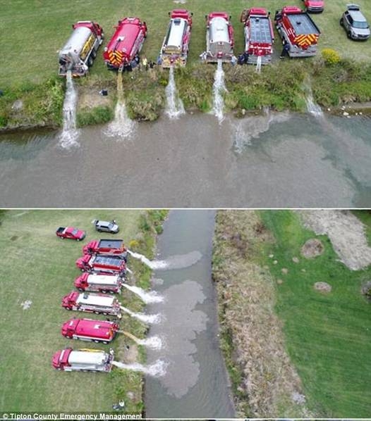 印第安納州環(huán)保當(dāng)局表示,該工廠的牛奶不會對附近的人類或野生動物構(gòu)成危險,只是得盡快處理以免事情進(jìn)一步擴大。事故發(fā)生后,有關(guān)人員將干草包投放到河中以防止牛奶進(jìn)一步擴散,而清理公司則從河水中清除了約1.4萬加侖(約53噸)的水和牛奶混合物。