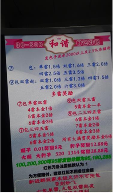 10月11日晚8時許,咸安公安分局治安大隊民警在對旅店業(yè)進(jìn)行巡查時,發(fā)現(xiàn)該區(qū)一酒店1316房間住宿人員曹某、劉某、殷某、駱某等4人行跡可疑。經(jīng)對其隨身物品進(jìn)行檢查,民警發(fā)現(xiàn)他們在電腦上利用QQ群搶紅包設(shè)置“中雷”的方式組織人員進(jìn)行賭博,其所建立的“和諧家園30-300多雷群”成員達(dá)200余人,涉賭金額巨大。